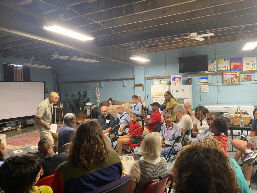 A young member of our community asks Mike Moses a question about his father during “Native Son: The Legacy of Paul B. Moses & Black History in Ardmore”, hosted by Neighbors Helping Neighbors in September 2024