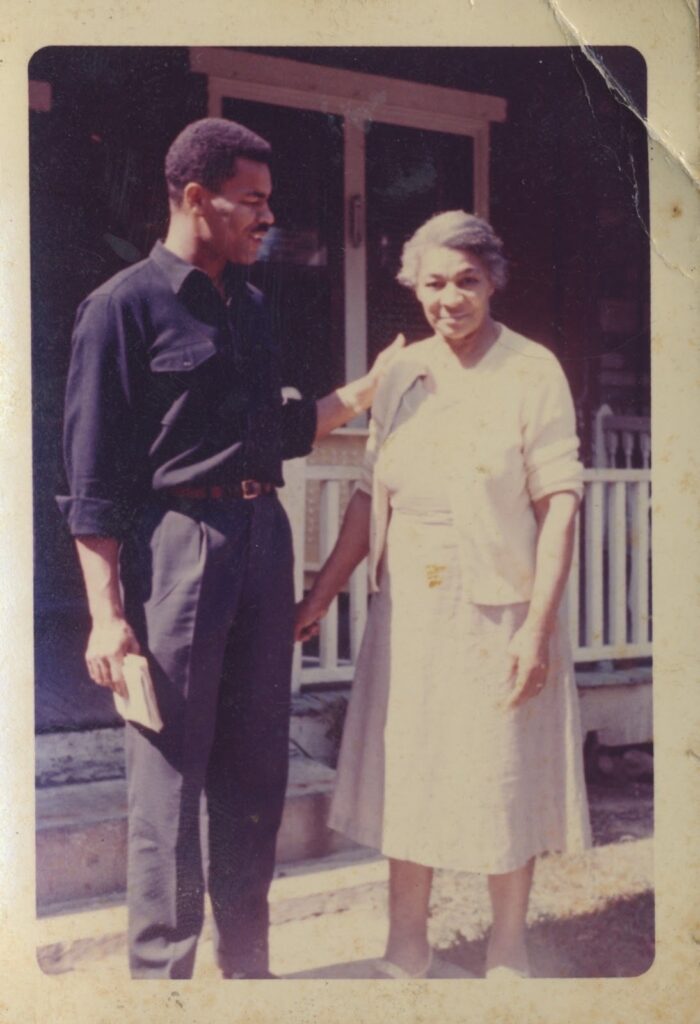 Paul Moses with his mother, Annie Moses, outside the family home in Ardmore, Pennsylvania, 1961